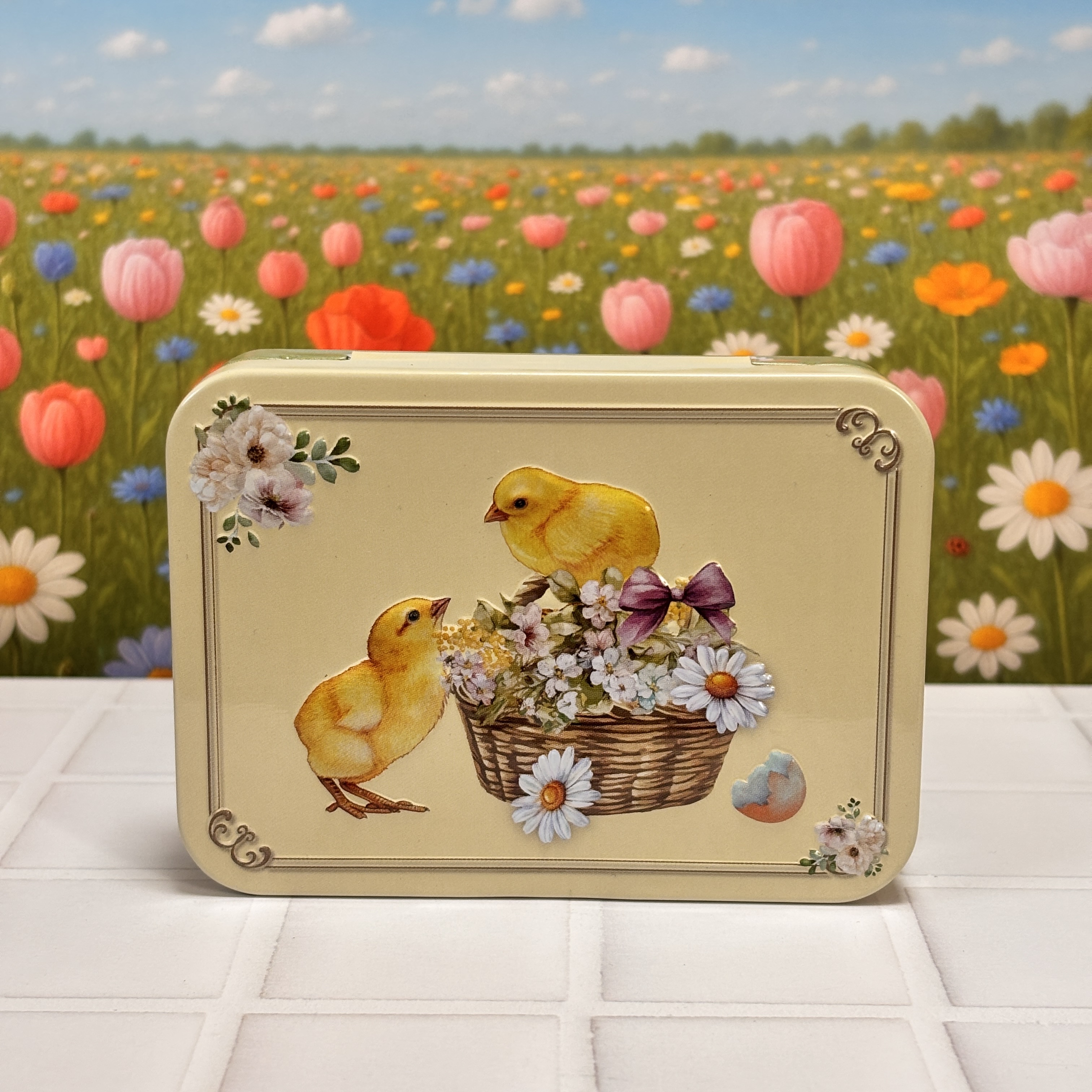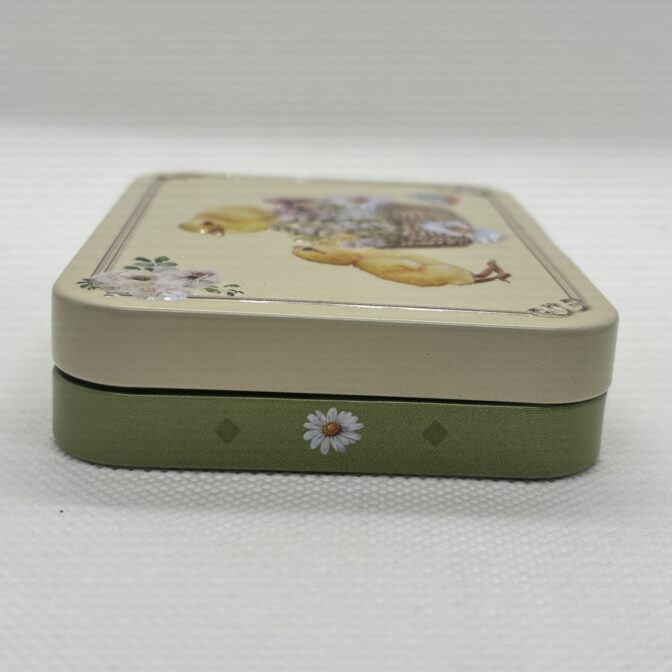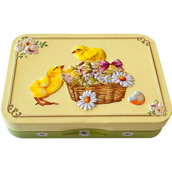 ひよこをデザインし、エンボス加工を施したミニ缶です。