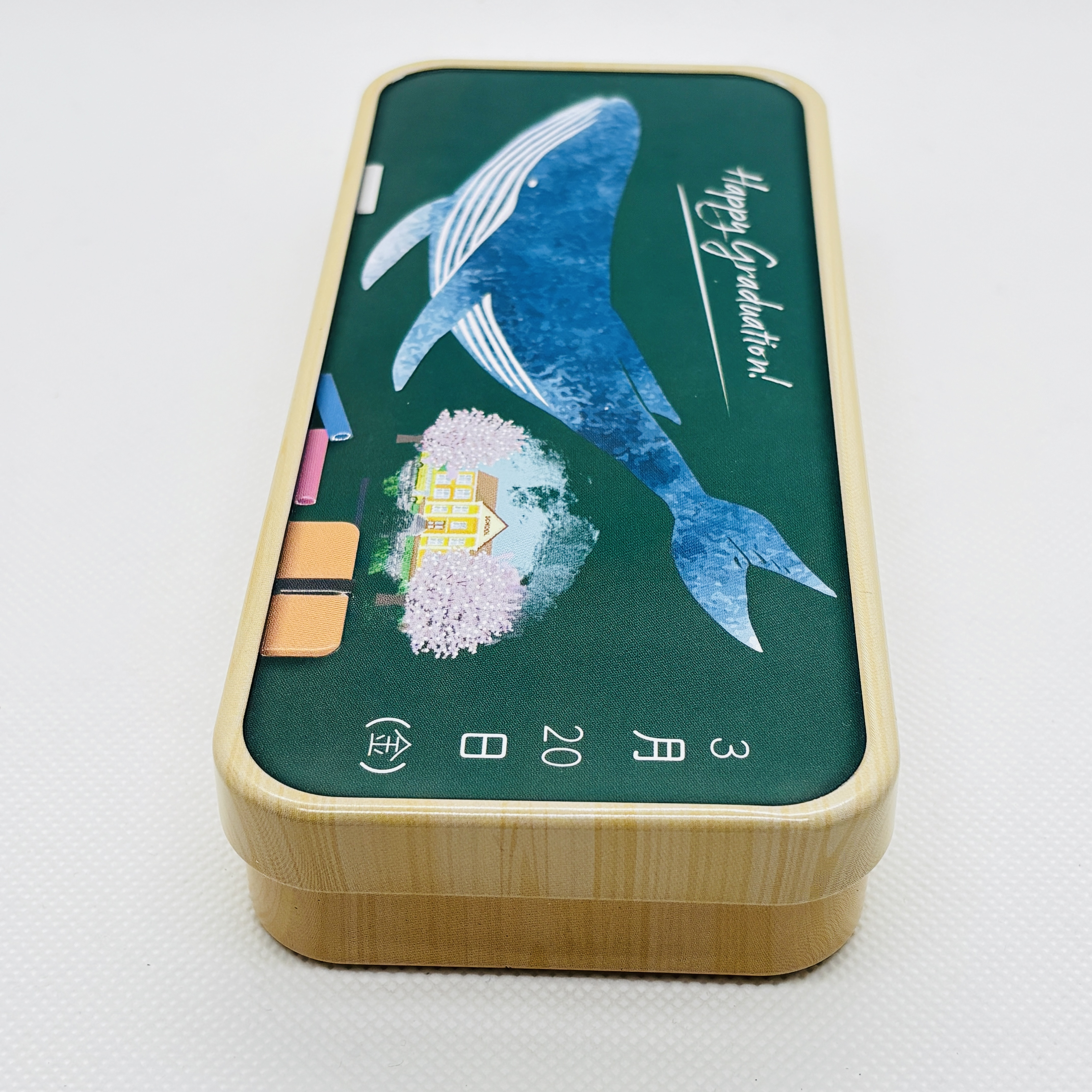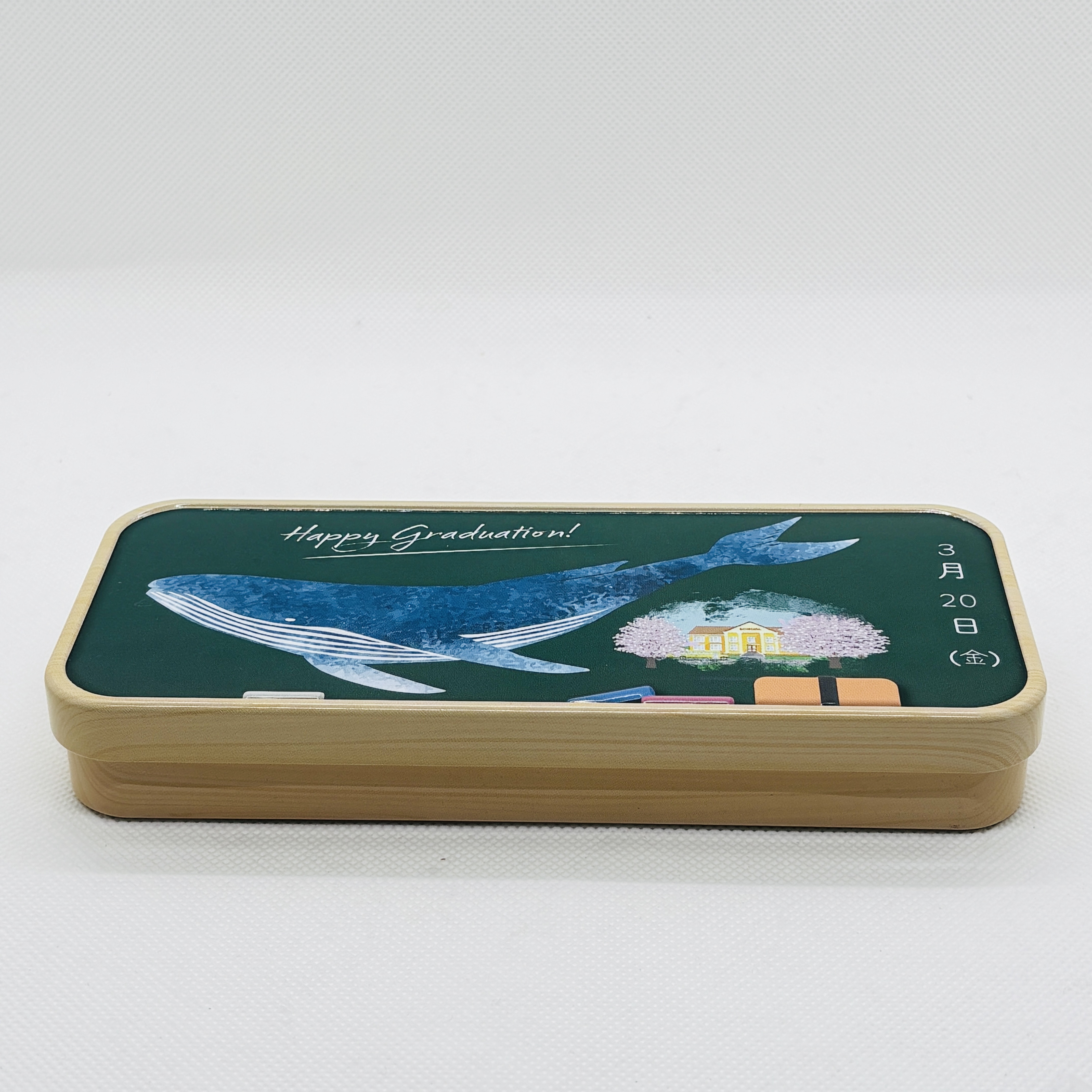 卒業式の黒板アートをデザインした缶です。