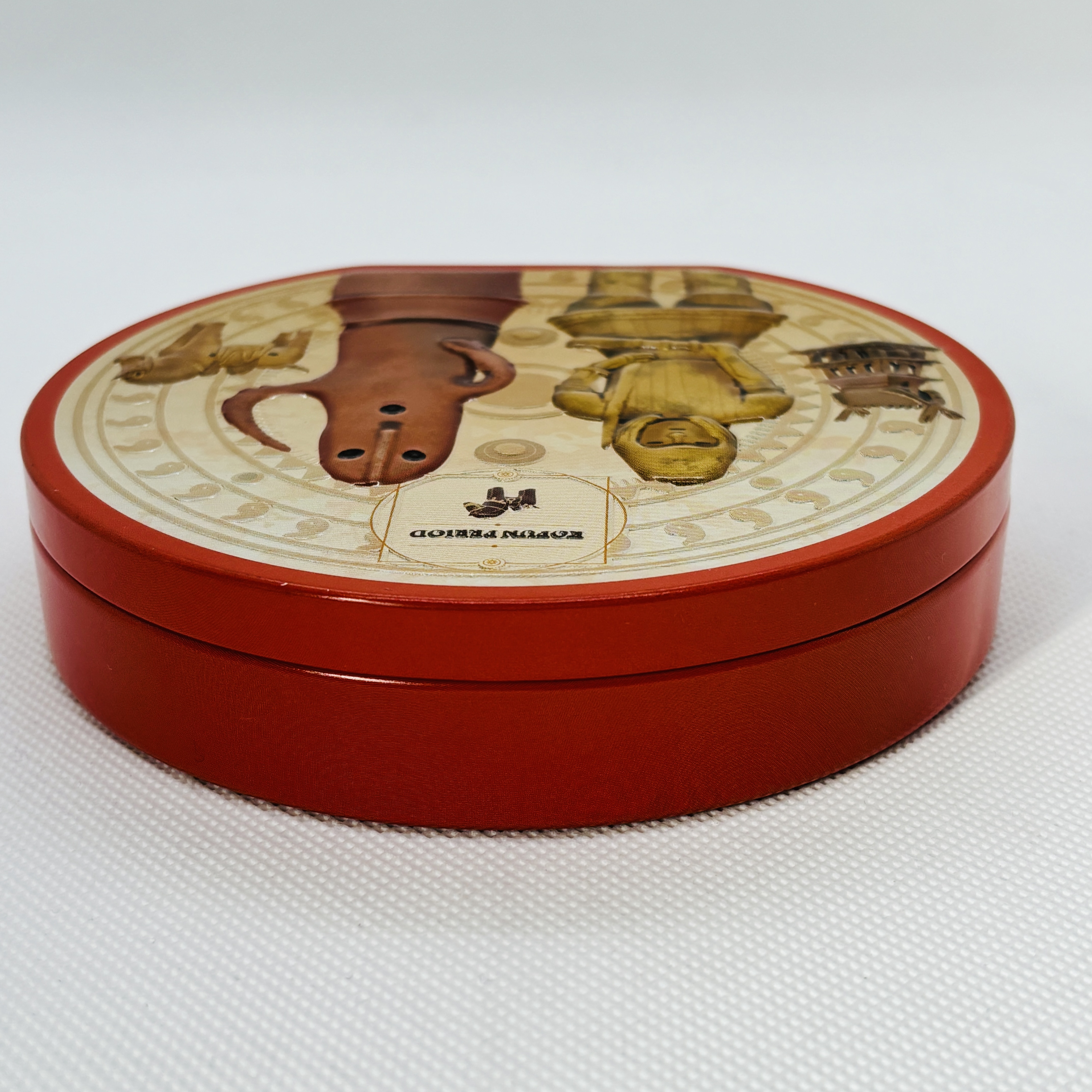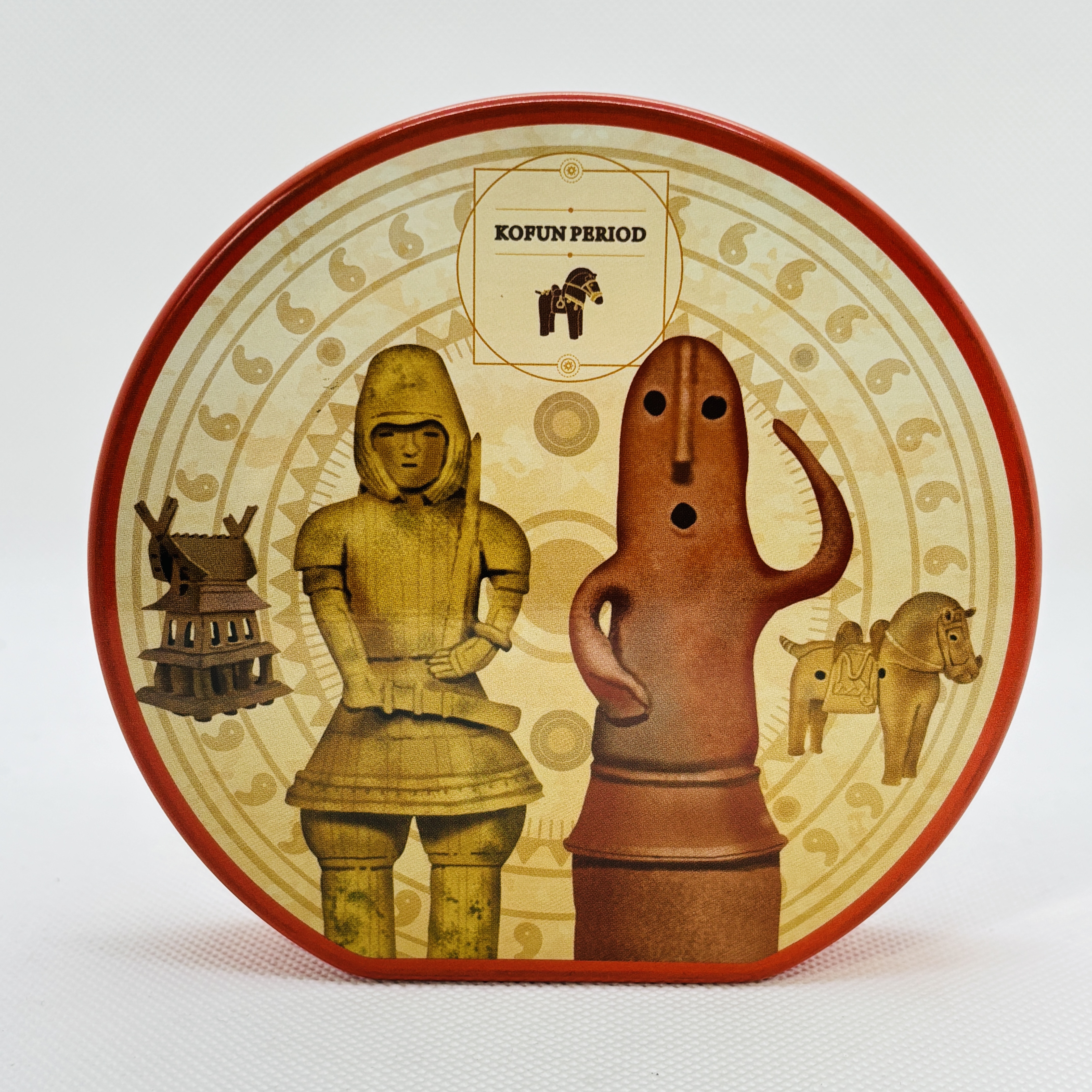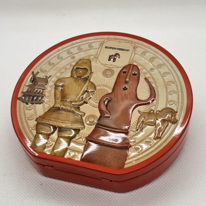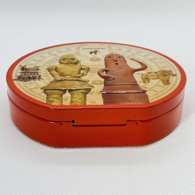 埴輪がデザインされたラウンド缶です。