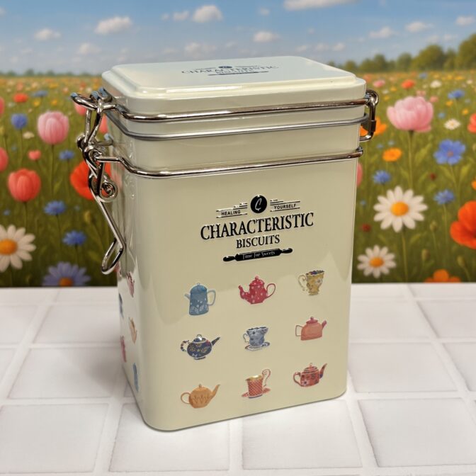 黄色のキャニスター缶の中に<マカダミアナッツ入りクッキー>を入れました。
