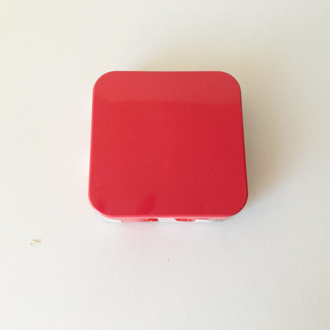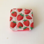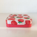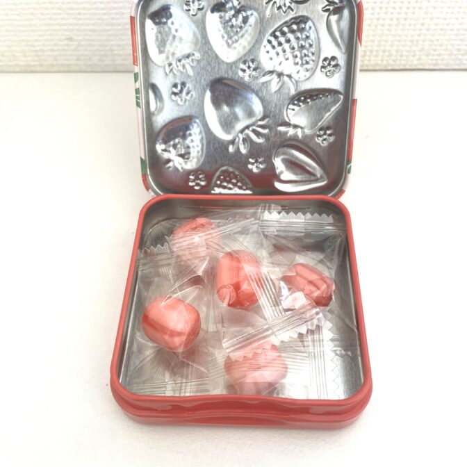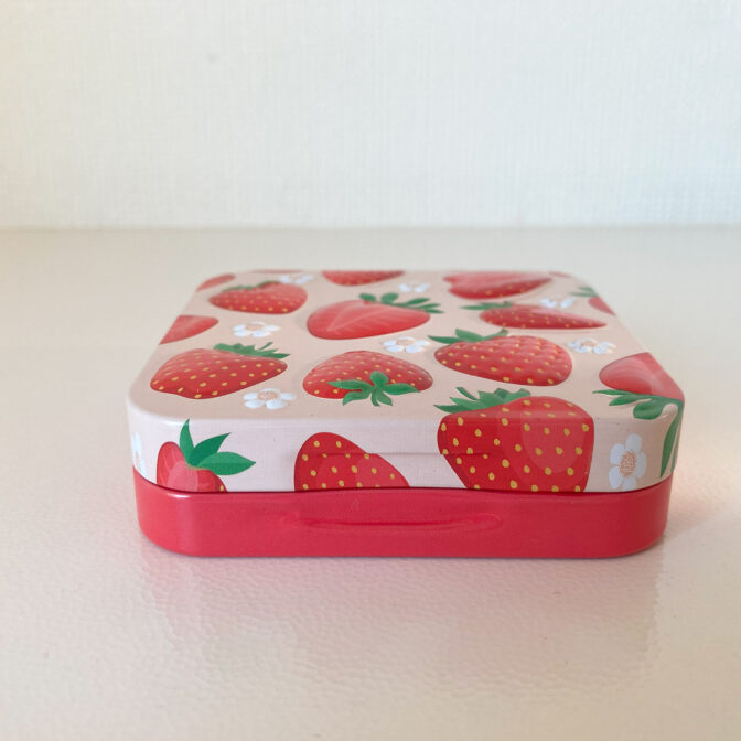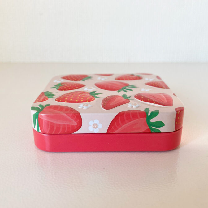 エンボス加工を施したストロベリー柄のミニ缶です。