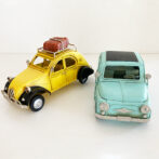 レトロな風合いが魅力のブリキ製自動車のミニチュアです。